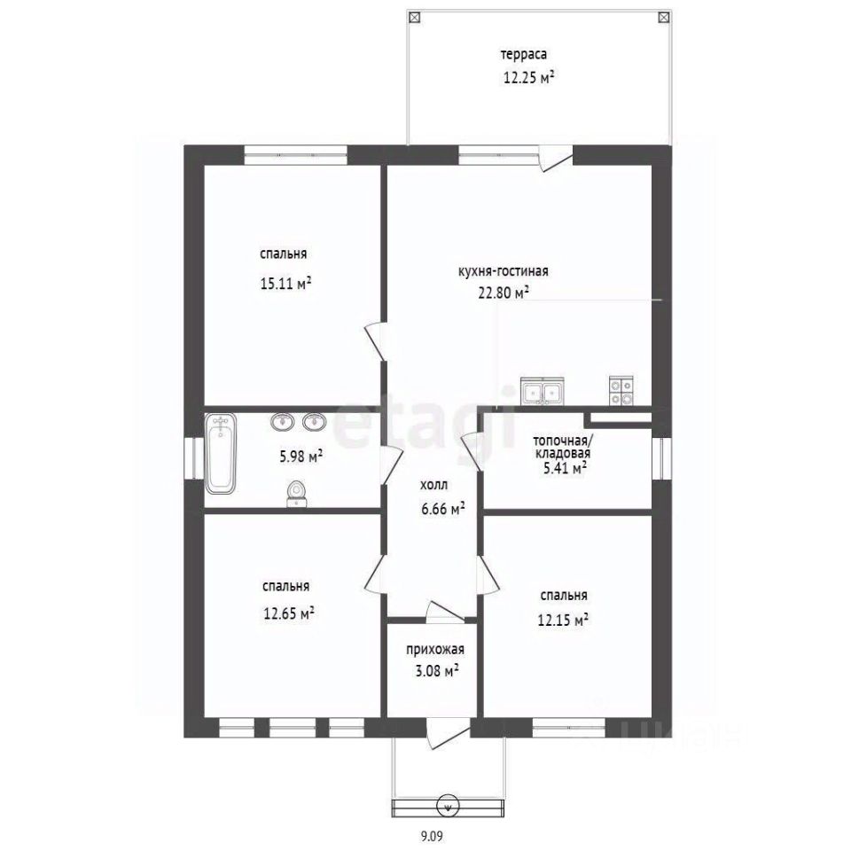 Спальни: Три уютные изолированные комнаты (15 кв. м, 12 кв. м и 12 кв. м) — идеально для семьи с детьми или для гостей.