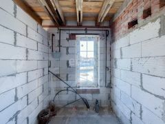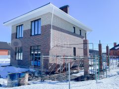 Коробка: стены сложены из газоблока (марка: D600), утеплитель из ЭКО-материалов. Фасад здания выложен облицовочным кирпичом.