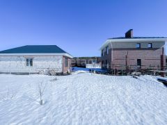Продаётся участок с 2-х этажным коттеджем (предчистовая отделка, площадью 225 м2) и гостевым домом с баней (50 м2). Красивый и продуманный в деталях. На первом этаже большая кухня гостиная, гостевая-кабинет, ванная, котельная, кладовая, просторная терраса. На втором этаже: 3 спальни, ванная, гардеробная, кладовая. На крыше по периметру установлены снегозадержатели и водосливы. Стены из кирпича, перекрытия бетонные. Качественные пластиковые окна Veka, электричество и газоснабжение. Смонтирована система отопления, установлен котёл. На полу стяжка, стены отштукатурены гипсовой штукатуркой.