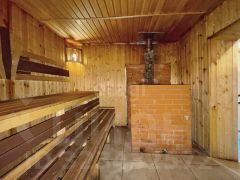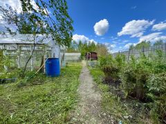Участок благоустроен: кирпичная баня 2020 года постройки с дровяной печью, комнатой отдыха (12 кв. м), душем и парной. Теплица позволяет выращивать овощи и зелень, хозяйственные постройки упрощают содержание территории. На участке высажены яблони, груша, смородина, малина, виноград и крыжовник. Двор освещен, есть беседка и цветник, дорожки ведут к бане и другим зонам. Дополнительные удобства — погреб и железный гараж.