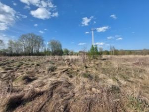 Ровный высокий участок прямоугольной формы, электричество заведено на участок, подъездная дорога — асфальт, деревня газифицирована.