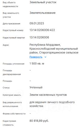 Вид разрешенного использования: для ведения личного подсобного хозяйства.