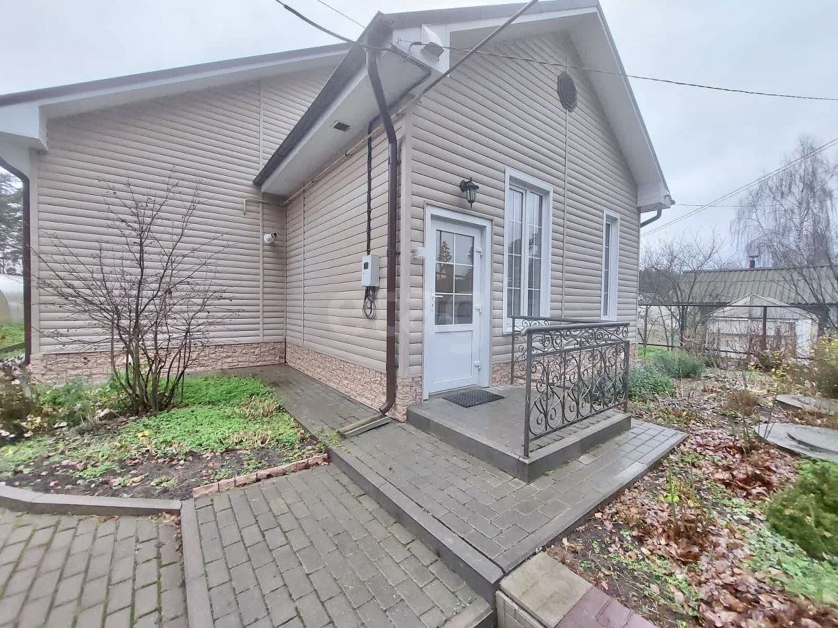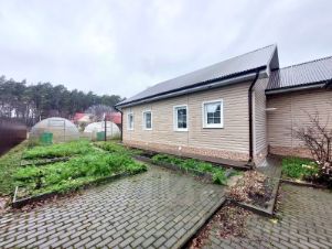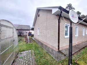 Стены — сруб плюс OSB плита. Фундамент бутовый ленточный и винтовые сваи. Крыша покрыта металлическим профнастилом. Обшит сайдингом. Коммуникации: электричество, газ, отопление (установлен двухконтурный газовый котел), водоснабжение (центральное), канализация (септик). При входе выложена брусчатка. Дом теплый, светлый, уютный. Надворные постройки: баня, сарай, летний туалет, погреб, две теплицы из поликарбоната, место для отдыха.