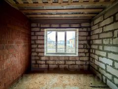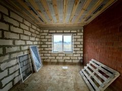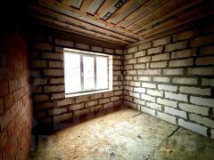 Дом стоит на ровном участке 12 соток правильной формы. К дому ведет новая асфальтированная дорога. Дом имеет два выхода. Второй выход с просторной кухни-гостиной во двор. Во дворе сделан колодец на 12 колец. 5 колец с водой. Электричество на столбе. Не заведено. Газ идет по границе участка под землей. Есть отдельная комната под котельную с входом в подпол. Пол — бетонные плиты-перекрытия. Под плитами уже можно монтировать канализацию и трубы.