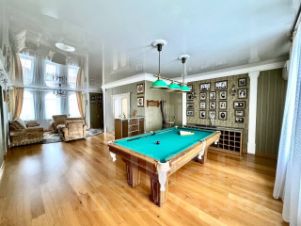 Теперь немного подробнее о нашем ДВОРЦЕ: выполнен дизайнерский ремонт, дом имеет аж 12 комнат, а именно: 3 спальни, 2 ванные комнаты (душ и ванная), рабочий кабинет для встреч и переговоров, бильярдная, детская игровая комната, кухня, столовая, гостиная с камином. Внутри дома находится бассейн с гидромассажем, собственное джакузи, сауна и русская баня. Также имеется стационарная закрытая летняя кухня с мангалом и всем необходимым для отдыха и приготовления блюд на огне, 2 гаража для авто и не только. На цокольном этаже расположены различные технические помещения, кладовая, мастерская и даже настольный теннис.