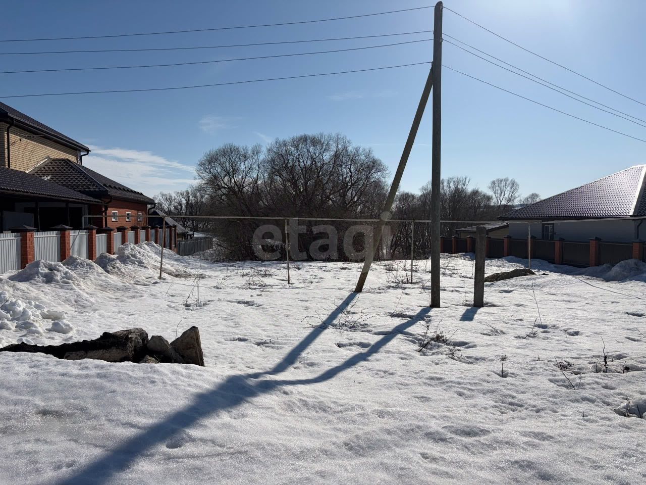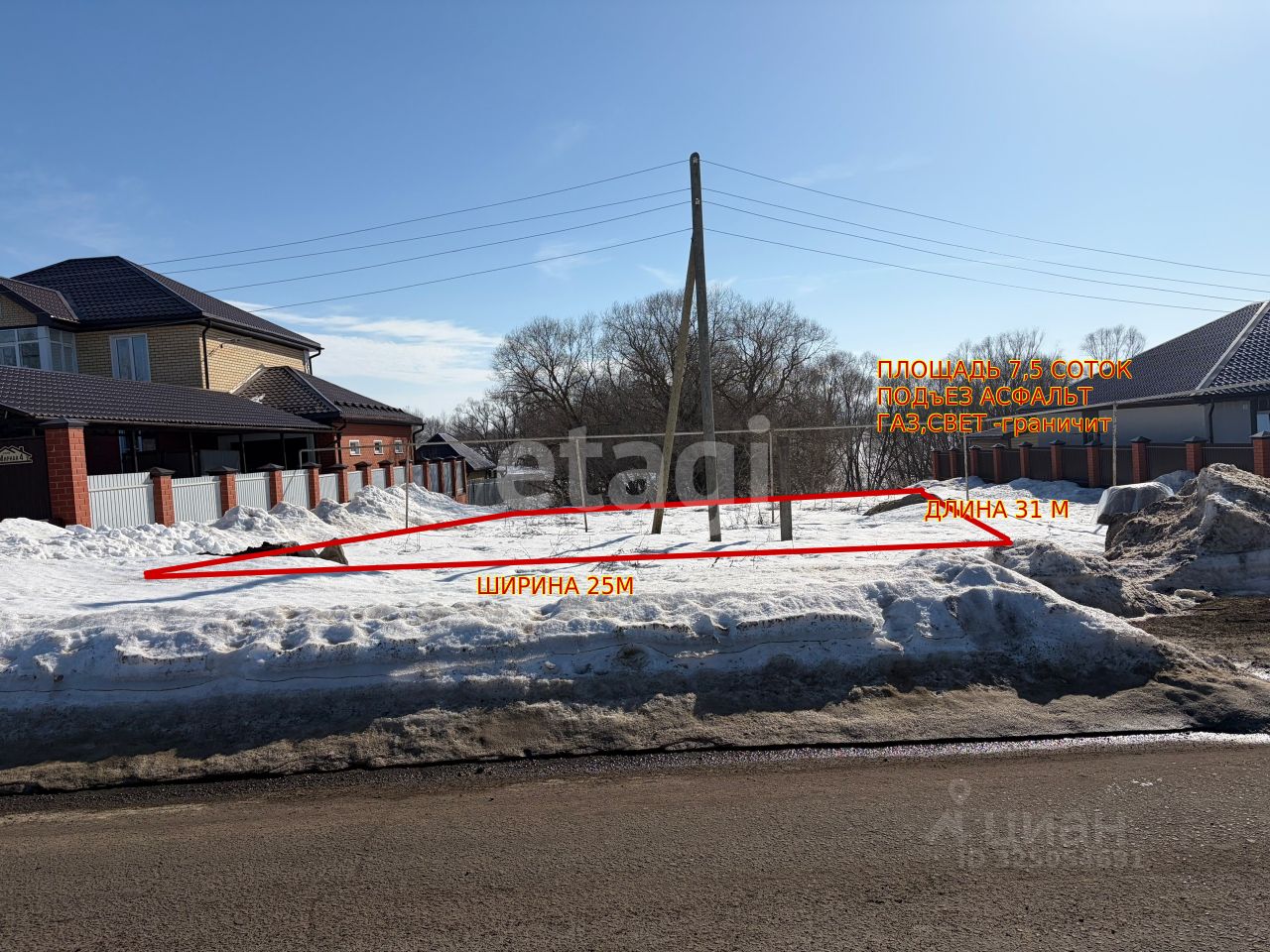 - Коммуникации: электричество — опора по границе участка, подключение без проблем; газ проходит по улице.