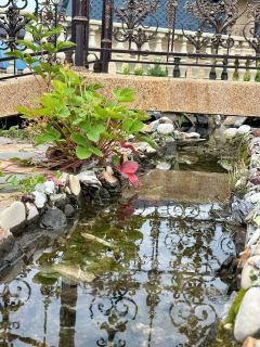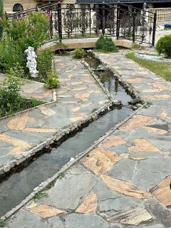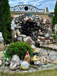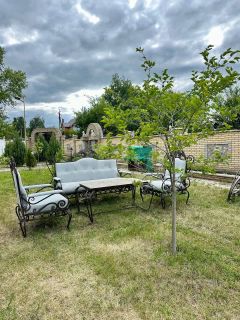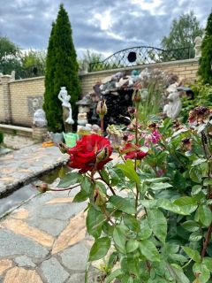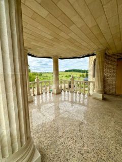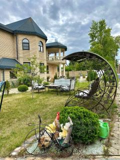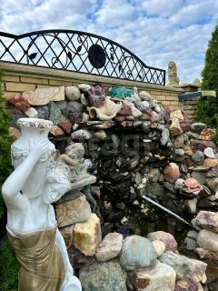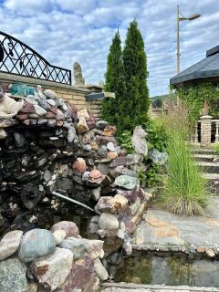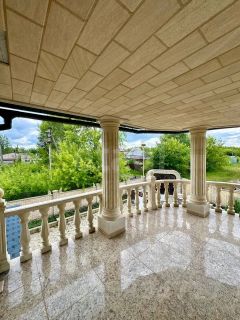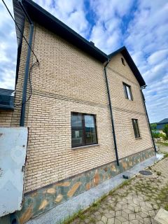 Дом расположен на земельном участке площадью 2174 кв. м (оформлены в собственность). Участок огорожен забором. Стены дома: кирпич + облицовочный кирпич. Фундамент ленточный. Перекрытия — железобетонные плиты. Кровля — профнастил. Дом построен для себя, много всего сделано, очень качественными материалами. Вода проведена в дом и по всему двору для полива, газ на границе участка, канализация своя, частично оштукатурено внутри, двери-окна стоят, электрика проведена по точкам, на территории множество плодородных деревьев и кустов, также имеется искусственный ручей с водопадом и мостом!