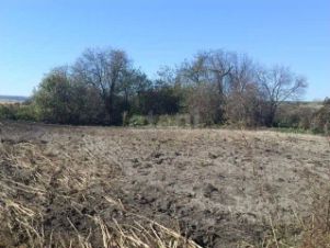 Участок правильной прямоугольной формы. Газ и электричество по границе участка. Асфальтированная дорога вдоль участка.