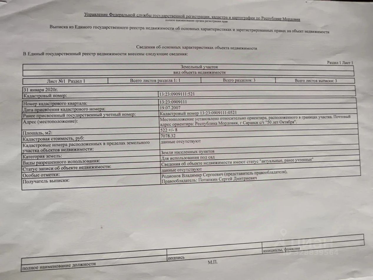 Статус участка
