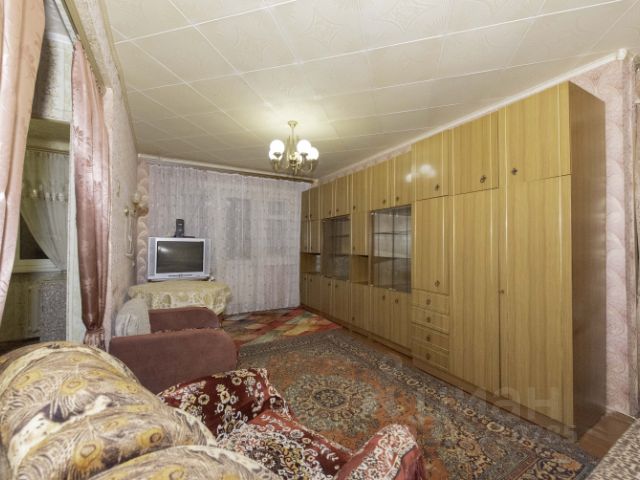 Зал: 20.4 кв. м., диван, кресла, стенка, телевизор, стол. Окно во двор, сторона света: север. Выход на застекленный балкон.